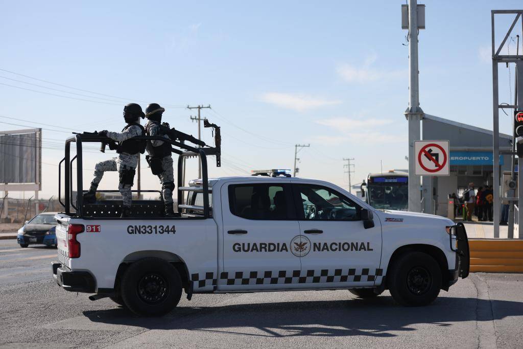 2025年2月4日,墨西哥国民警卫队员在墨西哥北部奇瓦瓦州华雷斯市巡逻。新华社记者李梦馨摄